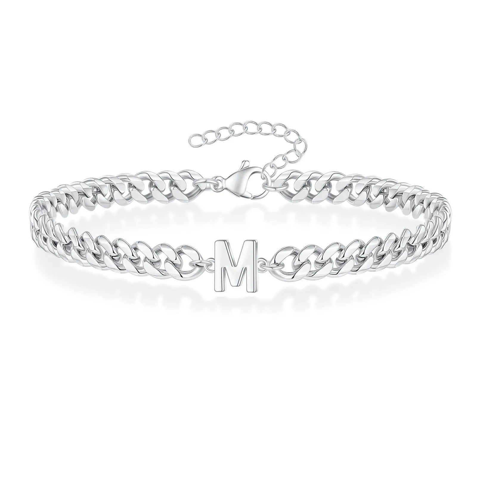 Dieses stilvolle Armband aus hochwertigem 316L Edelstahl in Silber verbindet modernes Design mit persönlicher Bedeutung. Die markante Gliederkette sorgt für einen zeitlosen Look, während der individuell wählbare Buchstabe das Schmuckstück zu einem ganz persönlichen Begleiter macht.