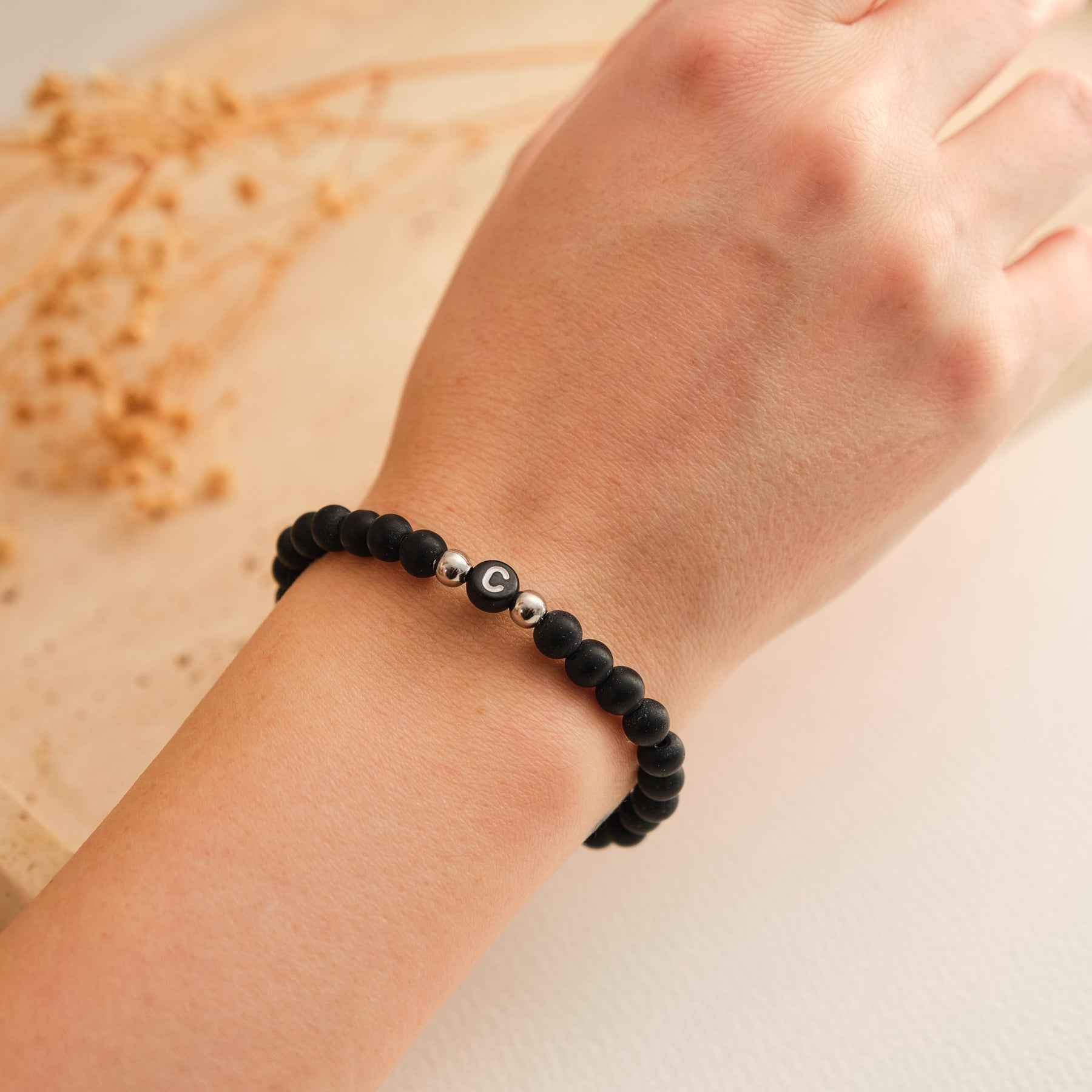 Initial Partnerarmband mit schwarzen Perlen