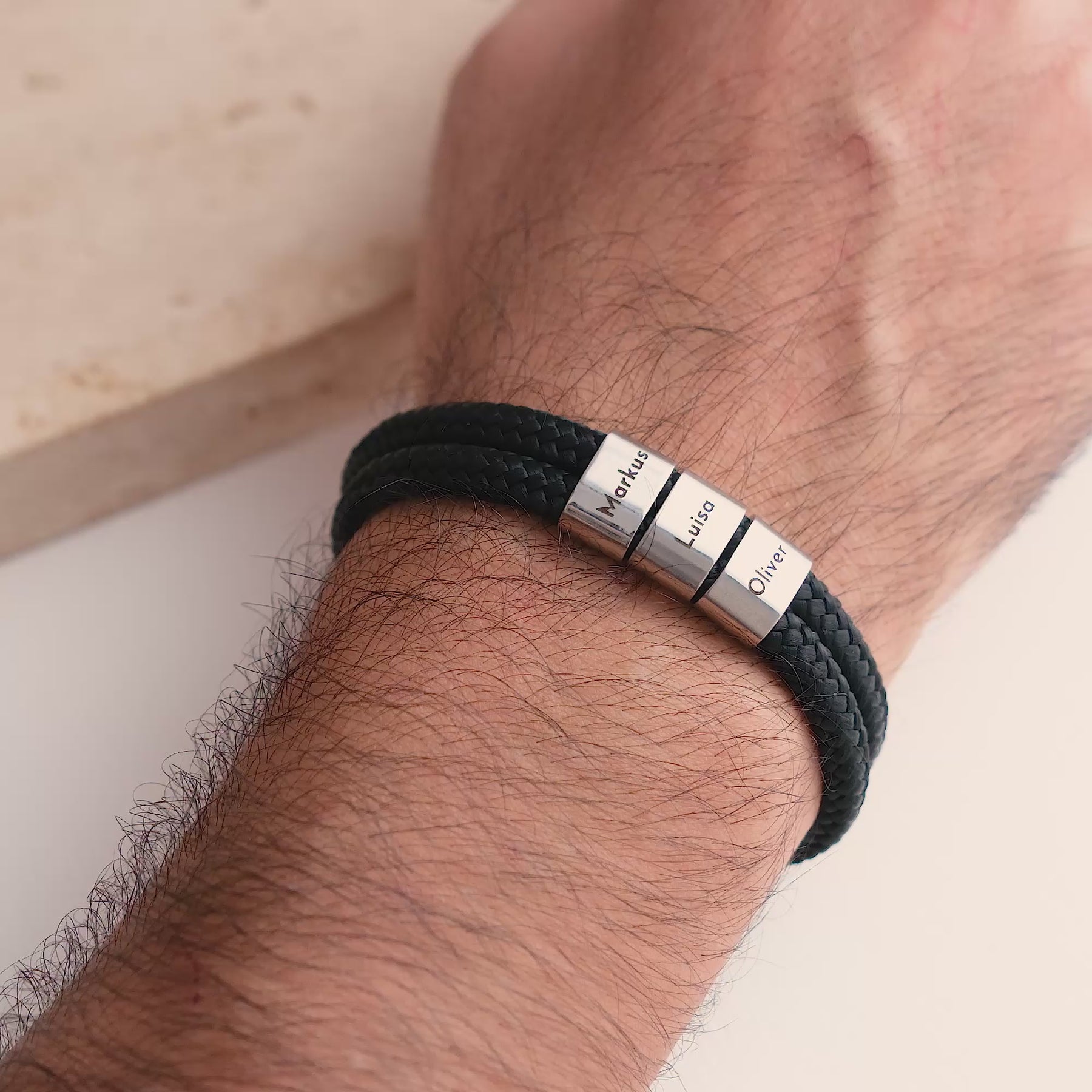 Personalisierbares Armband aus schwarzem Tau und Edelstahl – Dein individuelles Geschenk